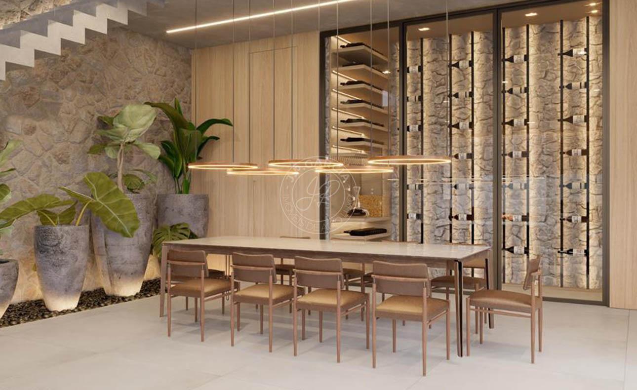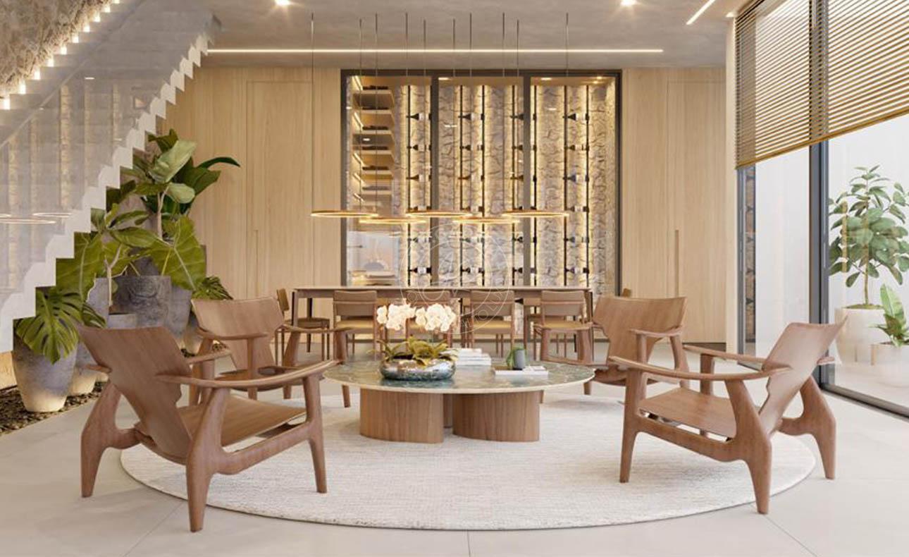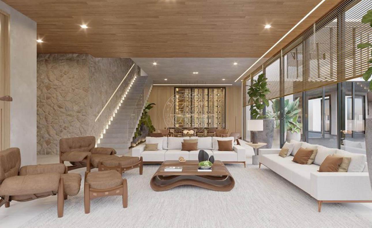 São 2.242m² de terreno e 1.000m² de área construída, planejados para oferecer uma experiência única de viver bem. Os ambientes foram concebidos de forma totalmente integrada, com amplo living, salas de estar e jantar, cozinha gourmet e espaço de convivência harmonioso.