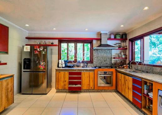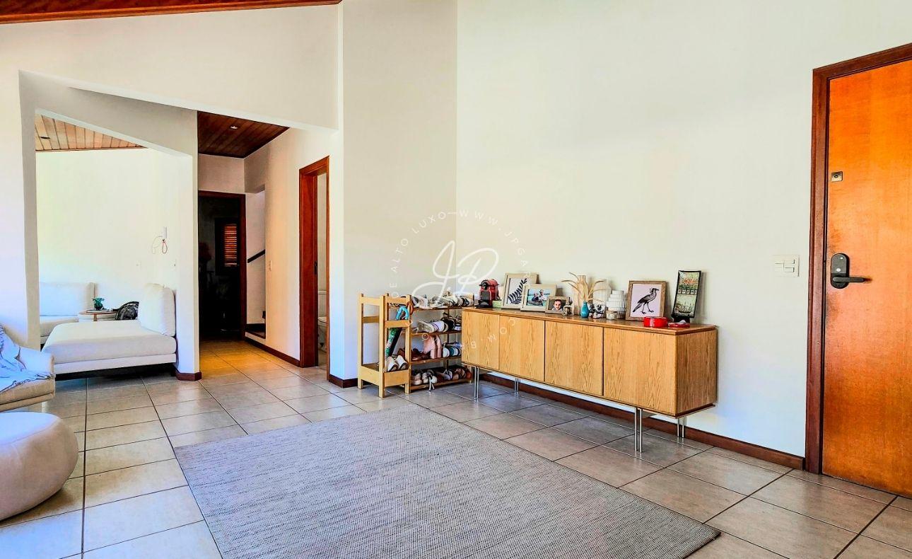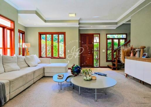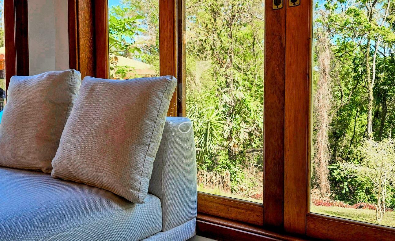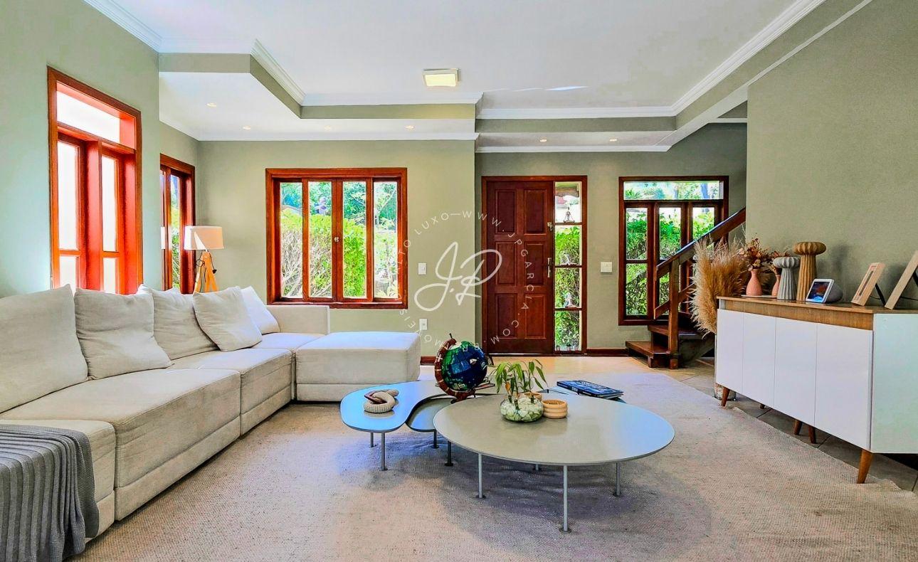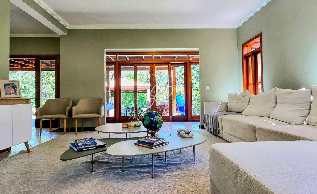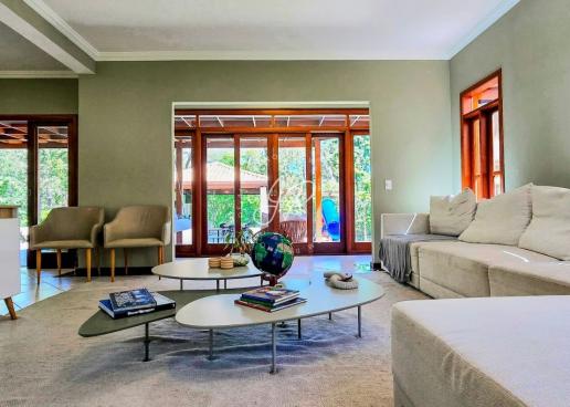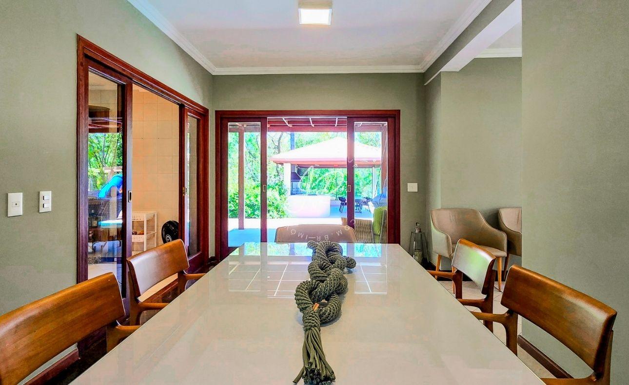 Em um terreno de 3.104m² com 499m² de área construída, os ambientes sociais são amplos e integrados, proporcionando convivência fluida: salas de estar, TV e jantar que se conectam à natureza através de janelas generosas, além de uma cozinha espaçosa e planejada, dois lavabos, lavanderia funcional e um escritório ideal para o trabalho ou estudos em casa.