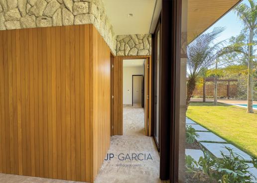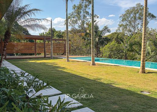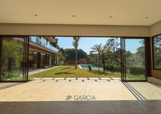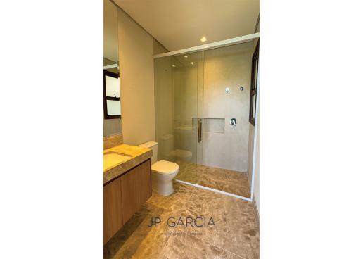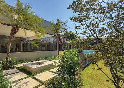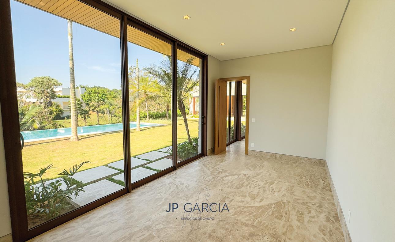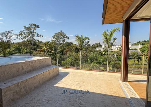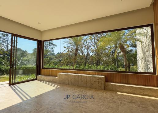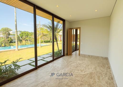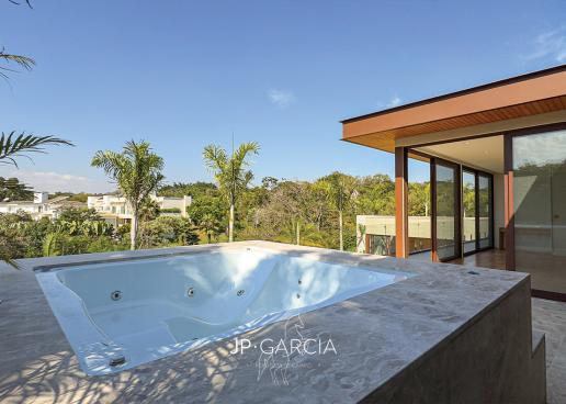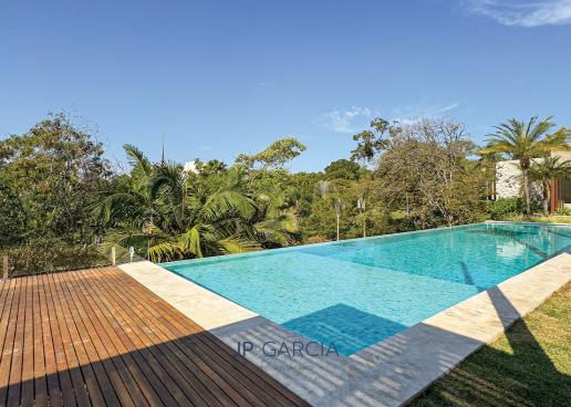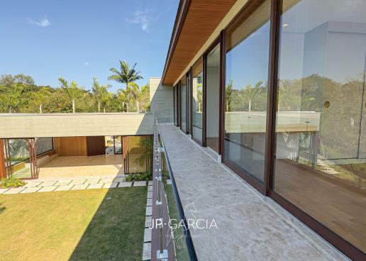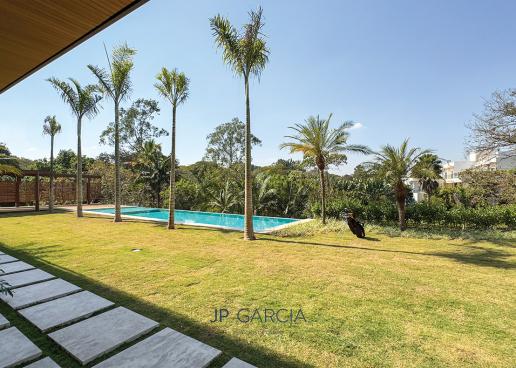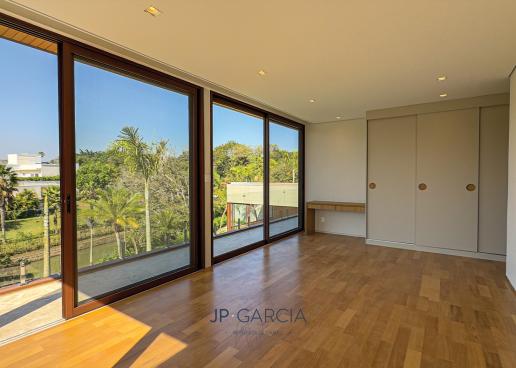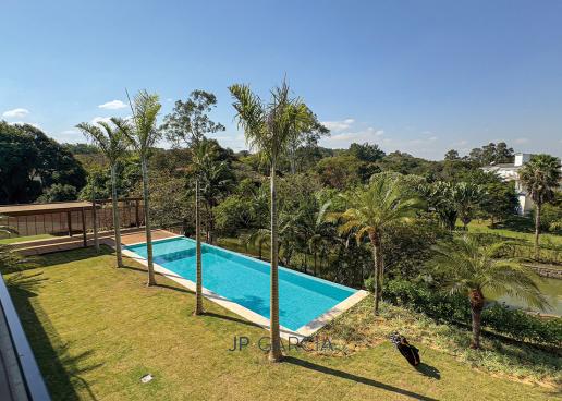Refúgio moderno com vista para o lago! Em terreno de 1.938m² e 750m² construídos, a casa oferece living amplo com pé direito duplo, lavabo, home theater, home office, cozinha com ilha e 6 suítes, sendo a máster com closet. Área de lazer com espaço gourmet, piscina aquecida e paisagismo encantador.