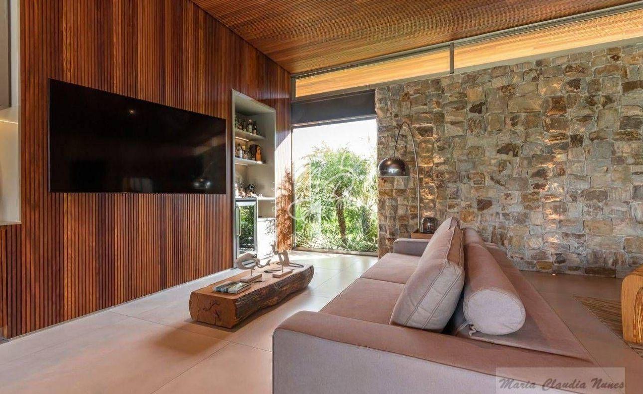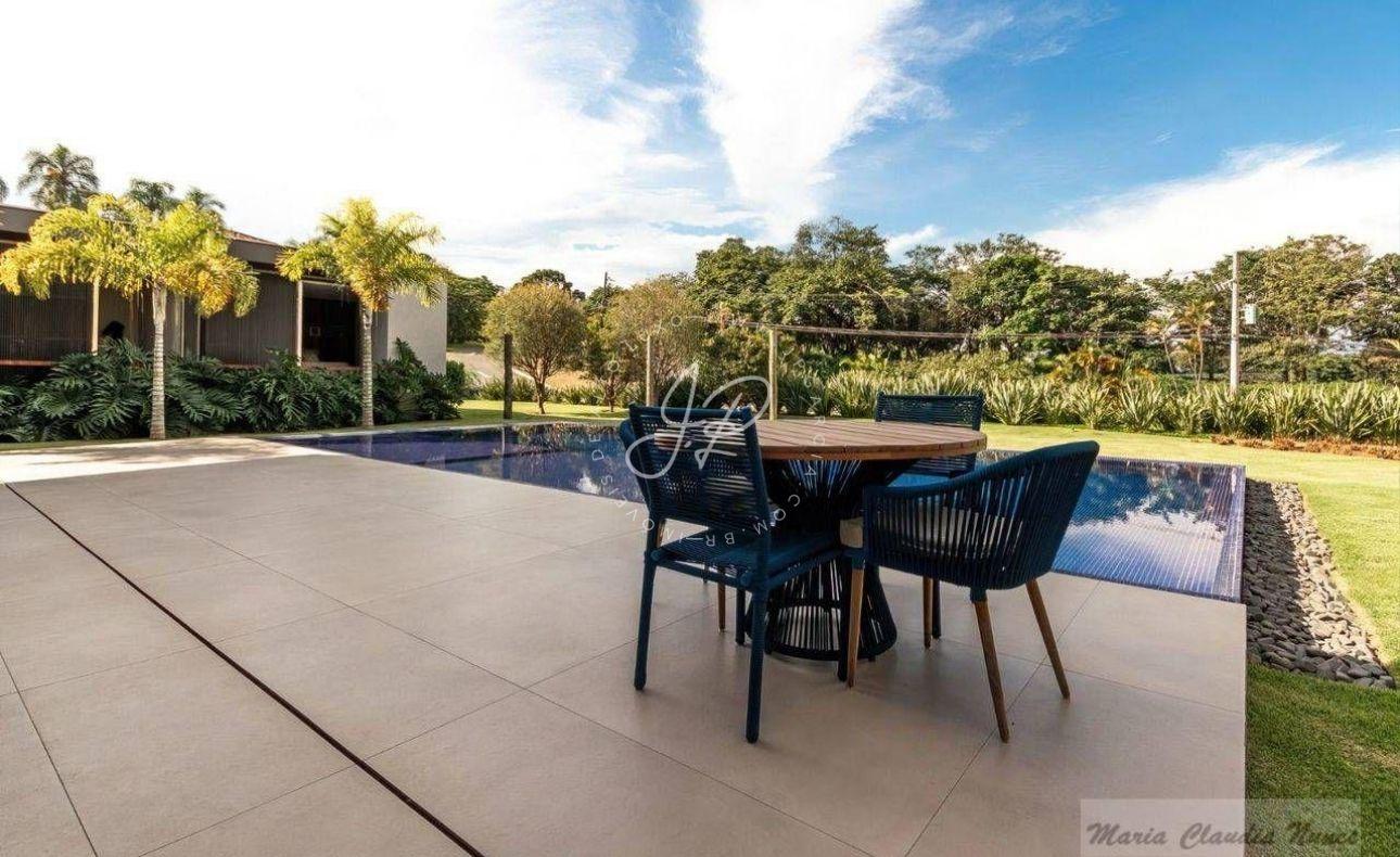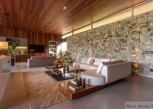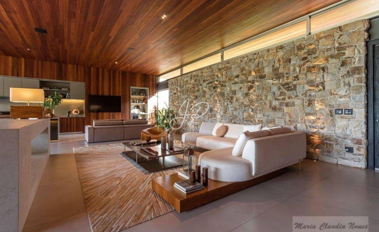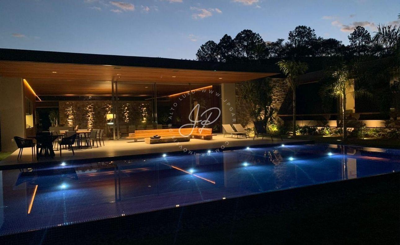 Casa contemporânea, totalmente térrea, localizada na área mais nobre do Condomínio Terras de São José I Com seus 630m² de área construída em um terreno amplo de 2.280m², disposto de ambientes integrados (sala três ambientes + área gourmet), projetados especialmente para receber amigos e familiares com todo o conforto possível. Além disso, conta com esquadrias minimalistas e uma belíssima decoração! Possui ainda home theater e suítes aconchegantes avarandadas com piso em madeira cumaru e vista para a piscina. E falando em piscina, a área externa é contemplada por um paisagismo deslumbrante que abraça toda extensão desse maravilhoso refúgio! Que tal agendar uma visita?