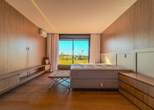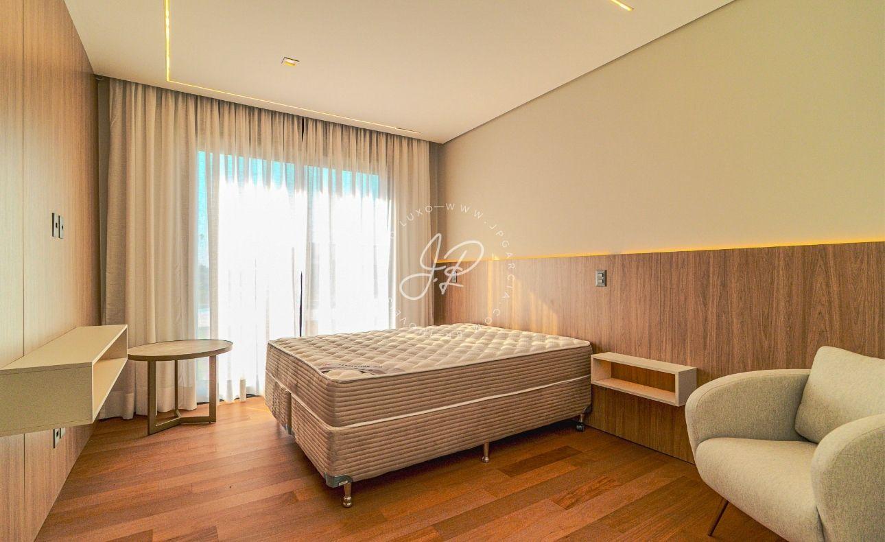 Na área íntima, são 5 suítes, todas com piso de madeira. A suíte master possui closet, penteadeira, banheiro com cubas e chuveiros duplos e jardim interno, trazendo uma sensação de spa.