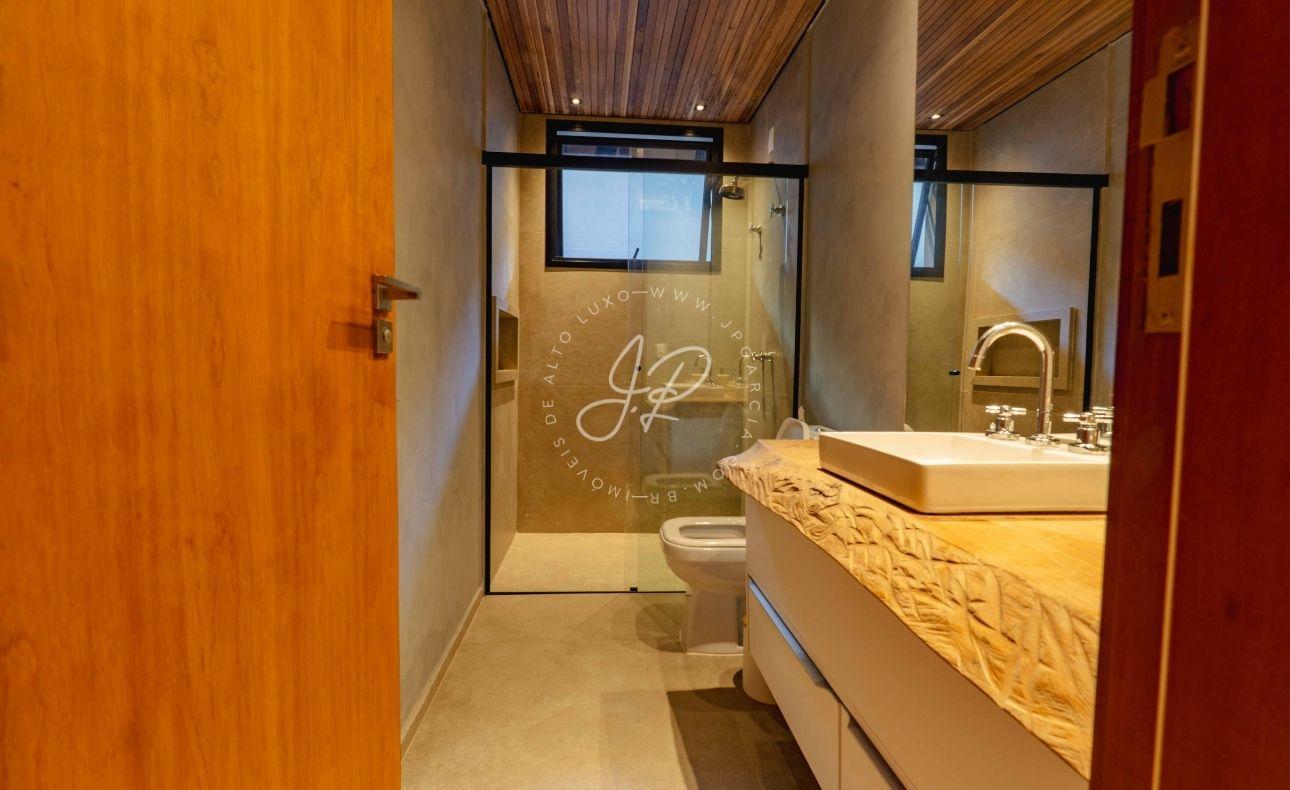 A unidade superior conta com acesso por elevador, garantindo praticidade e comodidade no dia a dia. São 400 m² de área construída, distribuídos em 6 suítes espaçosas, todas projetadas para oferecer bem-estar, privacidade e integração com a paisagem natural.